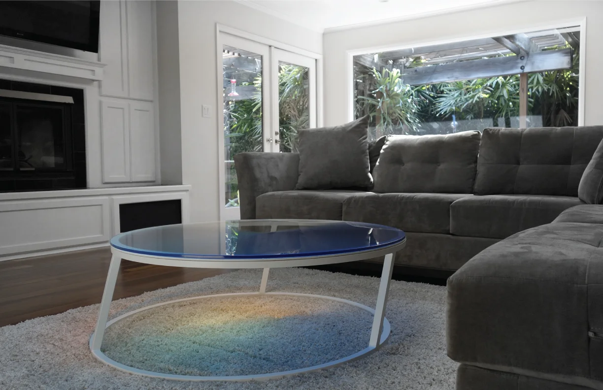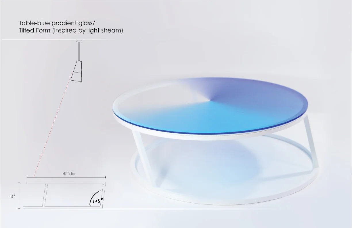 Light gathers individuals around the center of a home space to witness and interact with the colors emulating the sky. It is a magical setting with the light. Individuals can create their pure moment by mixing these “magic layers” by rotating the top lens and mix the colors of the sky.